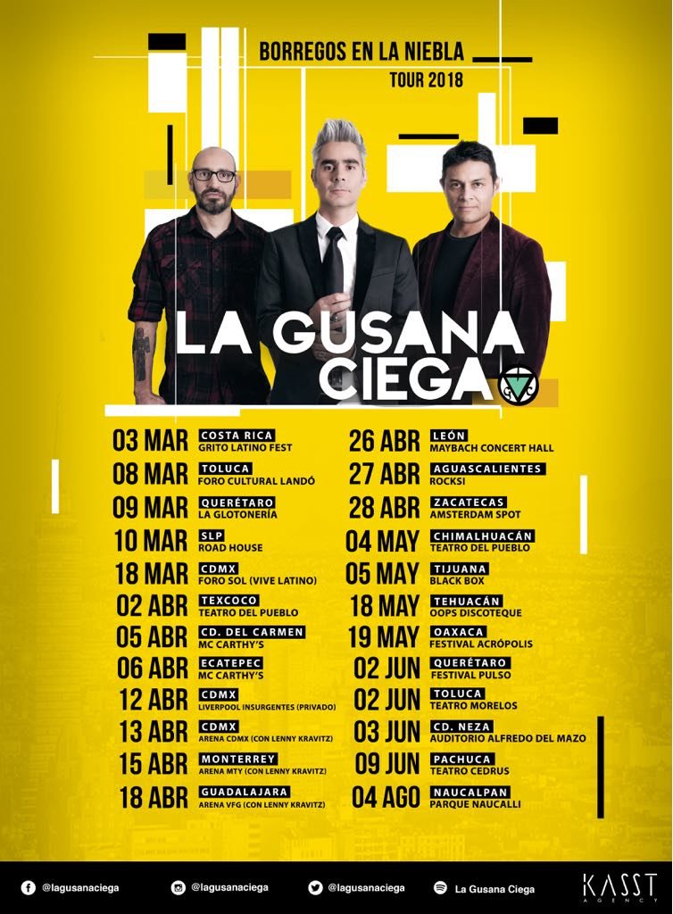 Esta año se viene con todo y tú no te puedes perder el show de La Gusana Ciega en tu ciudad para cantar a todo pulmón y corear con ellos tus canciones favoritas.